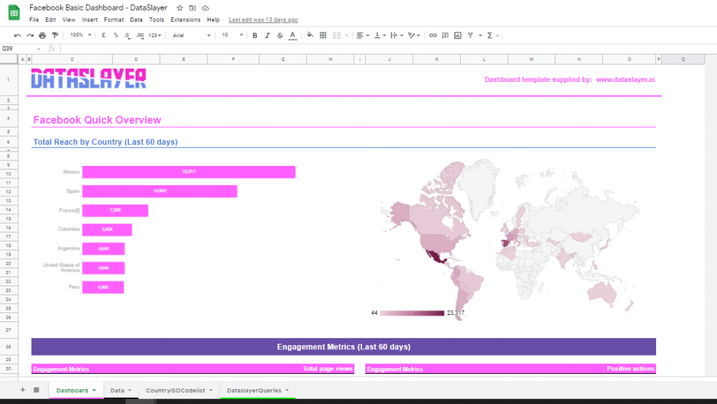 Importante: este post explica cómo crear y usar esta plantilla para crear un dashboard básico de Facebook que encontrarás en el galería de plantillas gratuitas de Dataslayer.