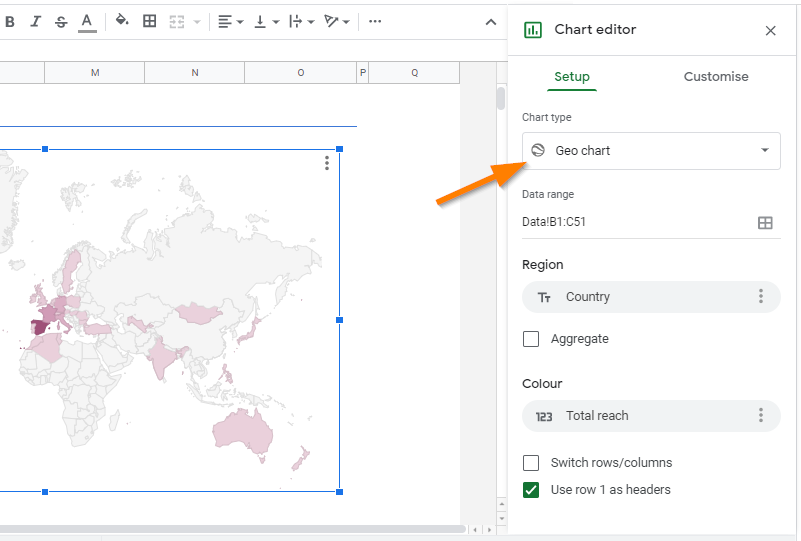 Exportar a spreadsheet datos del alcance de Facebook por países